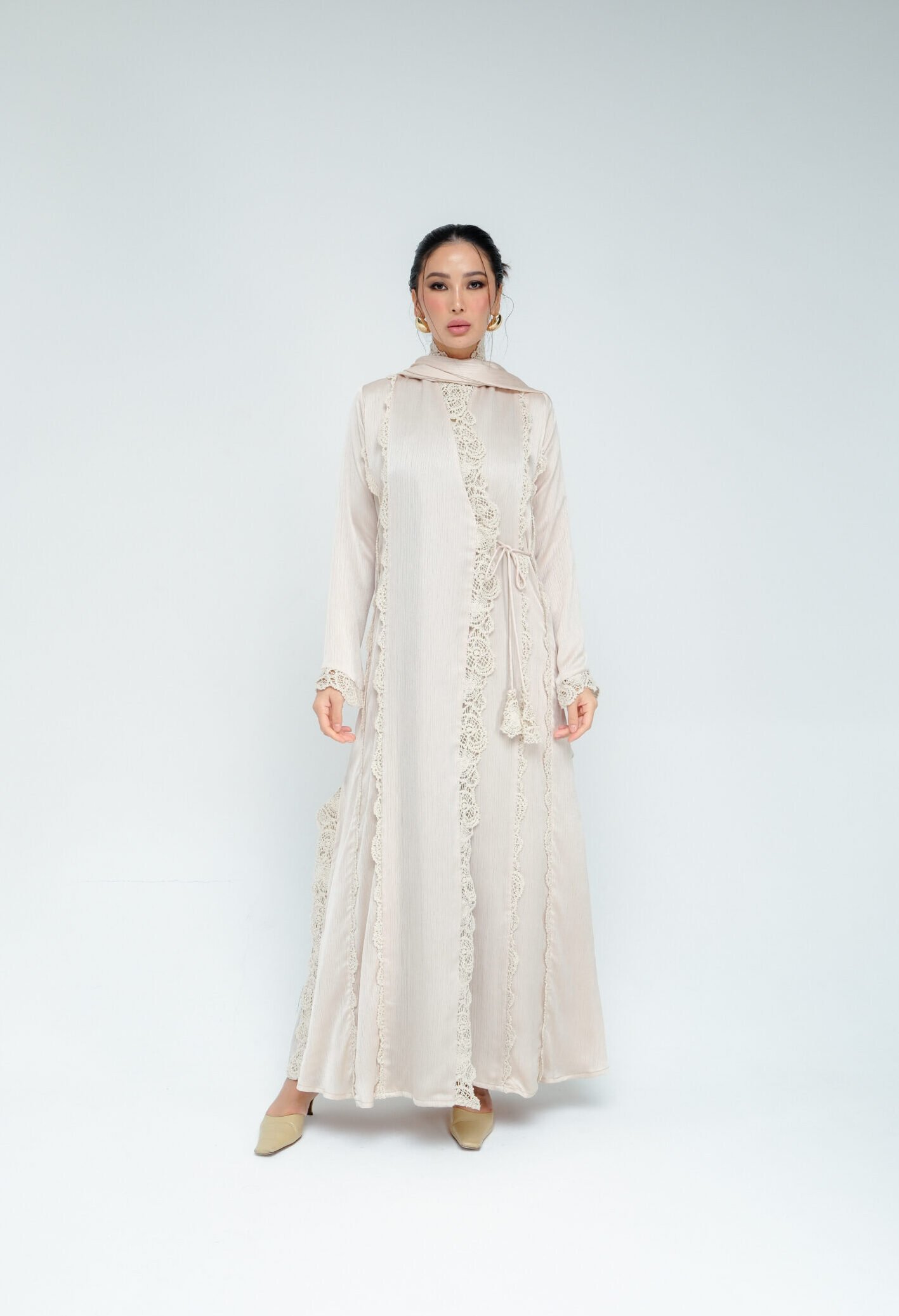 An A cut abaya crafted fro