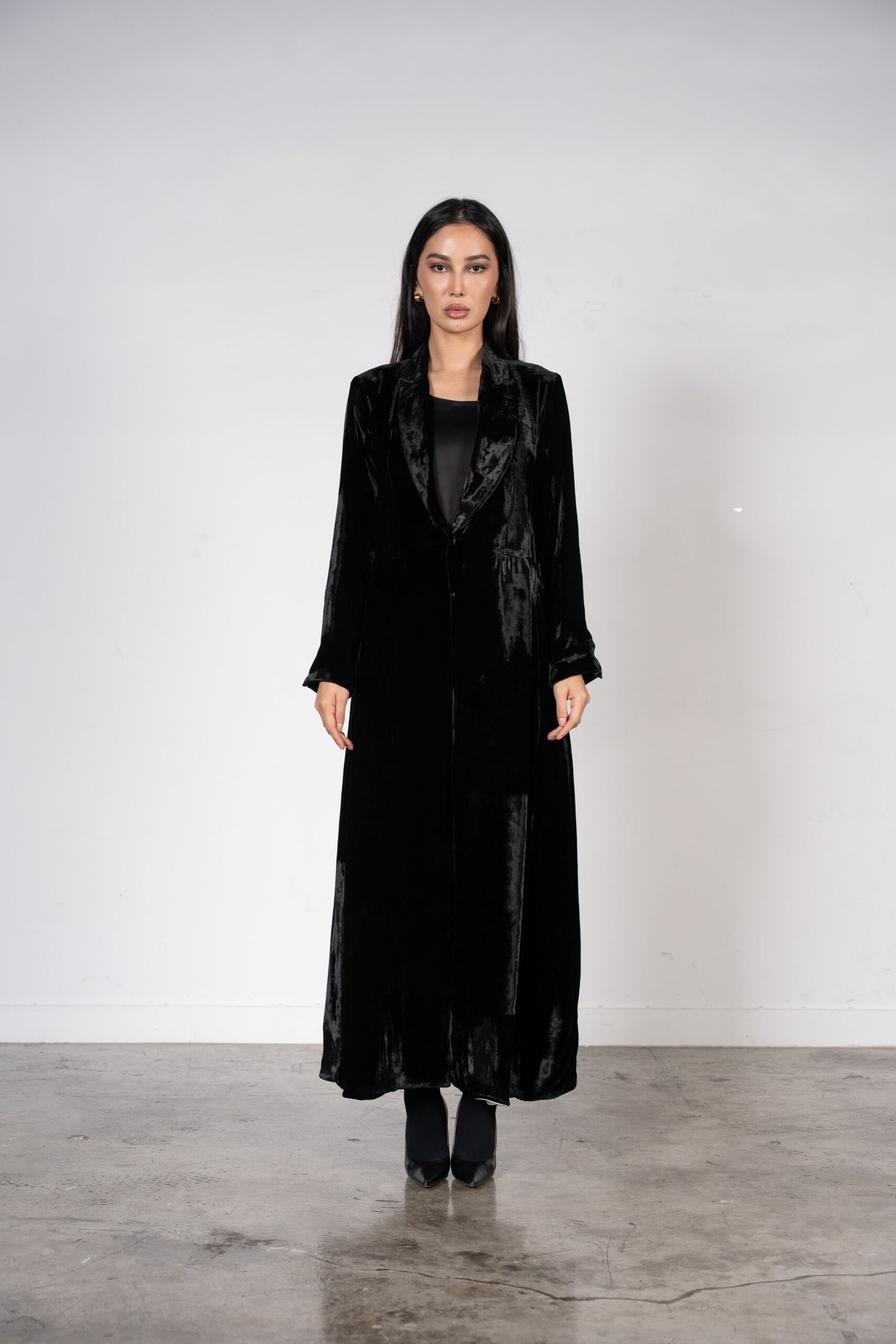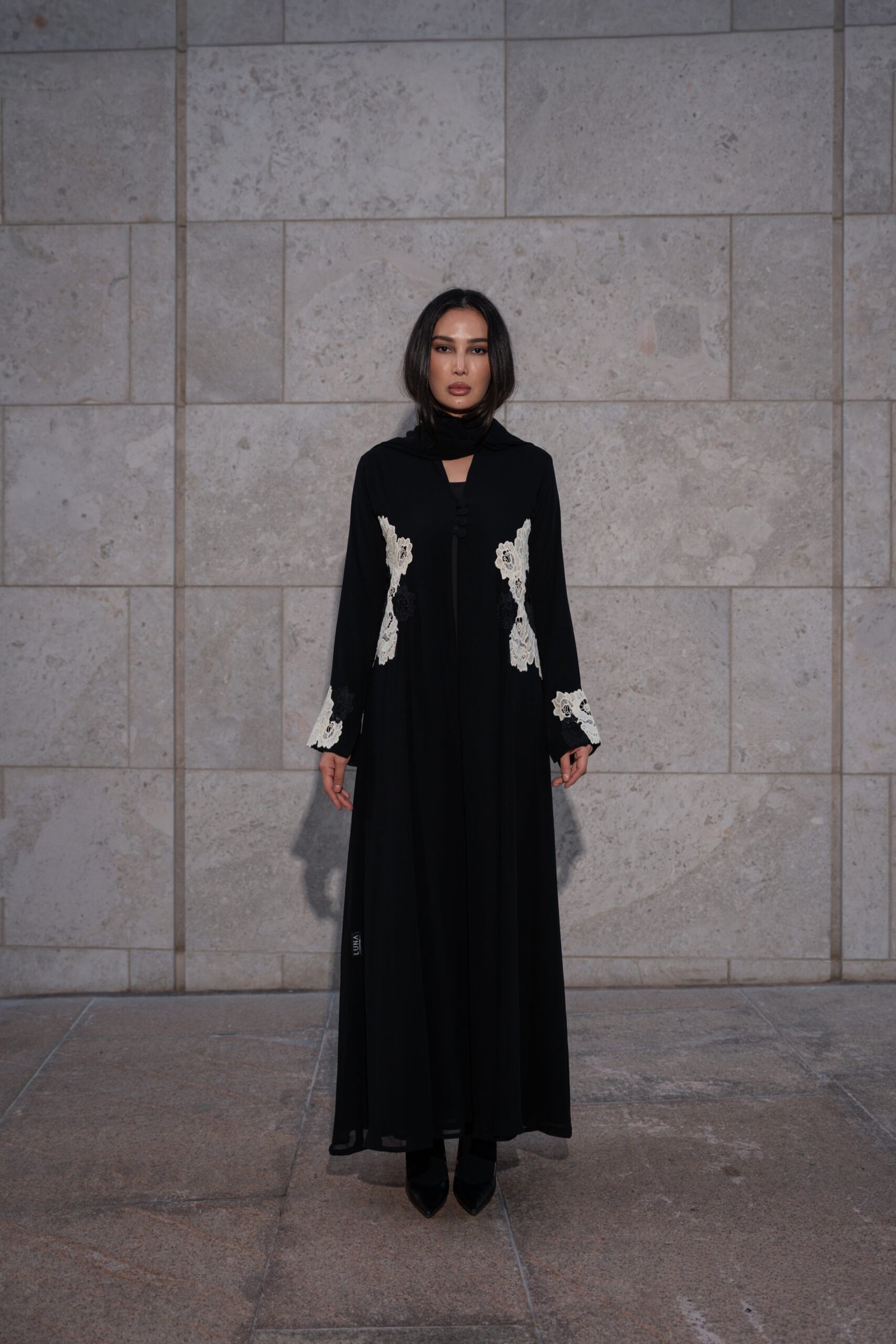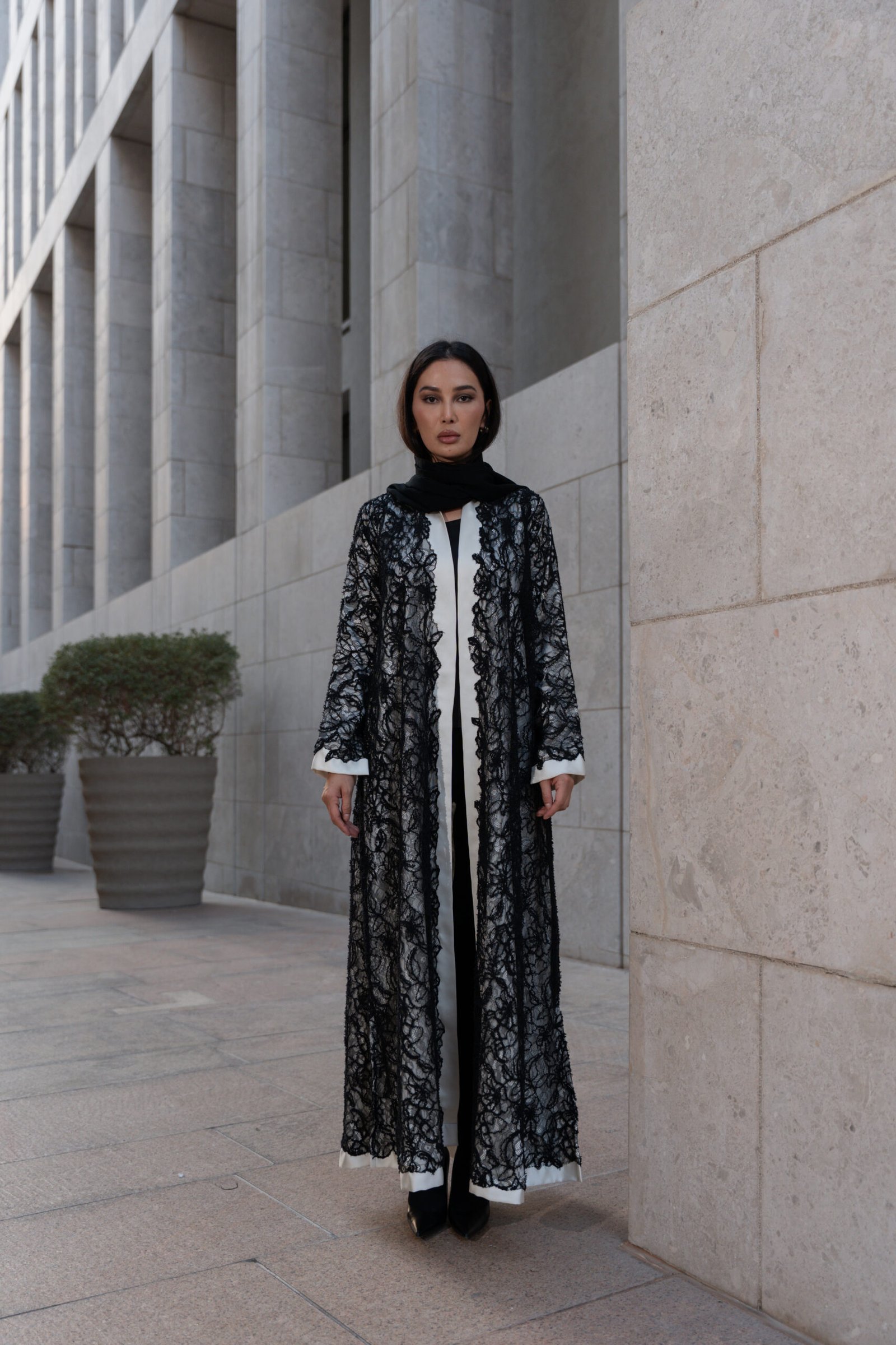 A jacket-cut abaya crafted