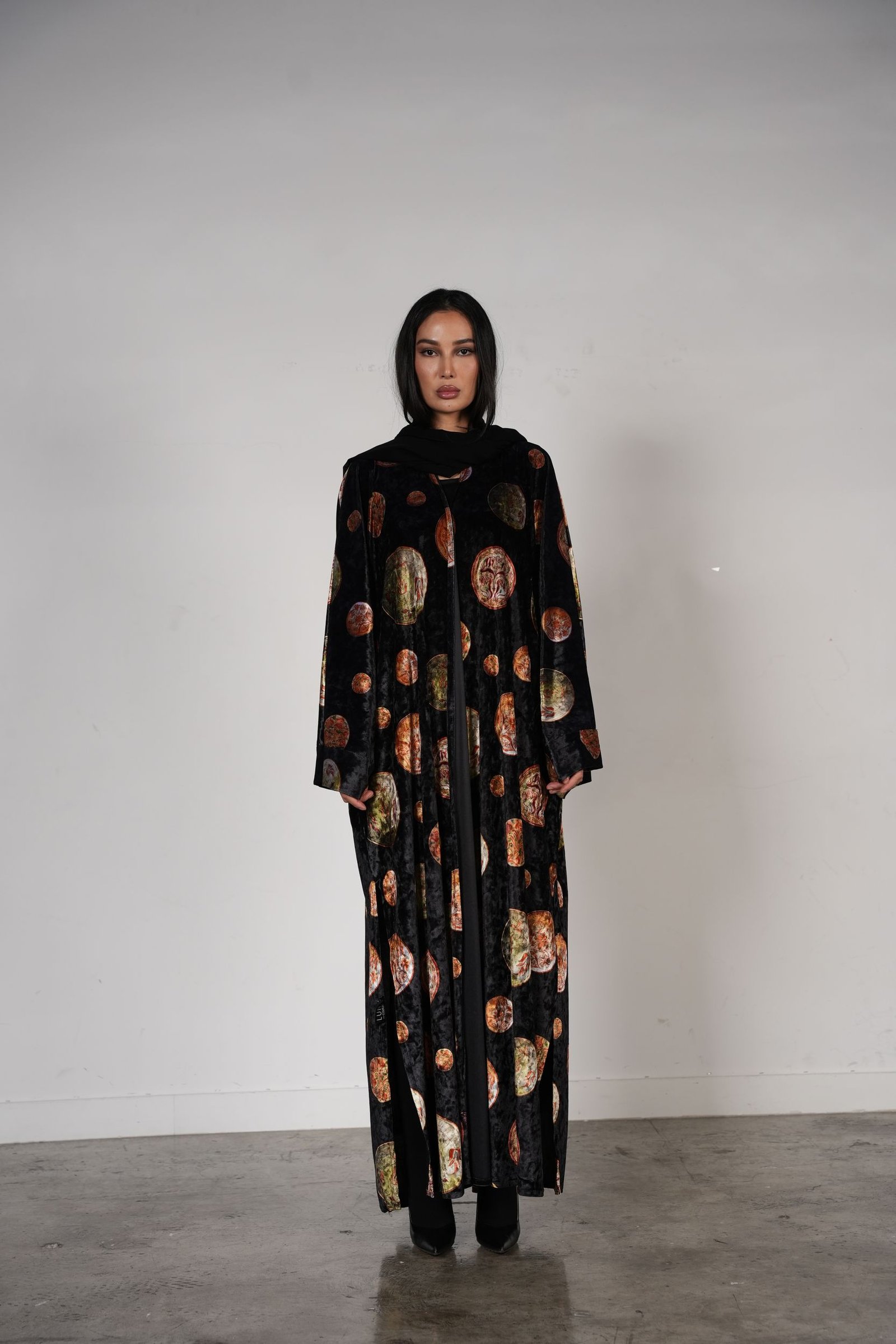 A unique black velvet abay